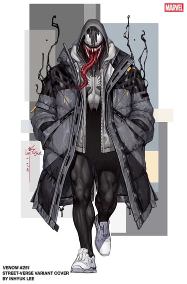 Celebrando 13 anos de colaboração com a Marvel, Inhyuk Lee reforça que a editora sempre soube aproveitar o melhor de seu talento visual. A série “Street-Verse” promete ser um prato cheio para fãs que apreciam o encontro entre cultura pop, quadrinhos e moda contemporânea.